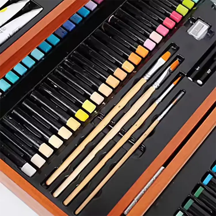42 color watercolor marker pen, 27 Color Oil-Based Crayons, 34 color pencils, 2B/4B sketch pencil each, 6#/8# flat peak brushes each, 2#/4# Yuanfeng brushes each, 12 Color Watercolor Paints (12ml), 12 color oil paints (12ml/piece), 12 Color Acrylic Paints (12ml) and Eraser/pencil sharpener each